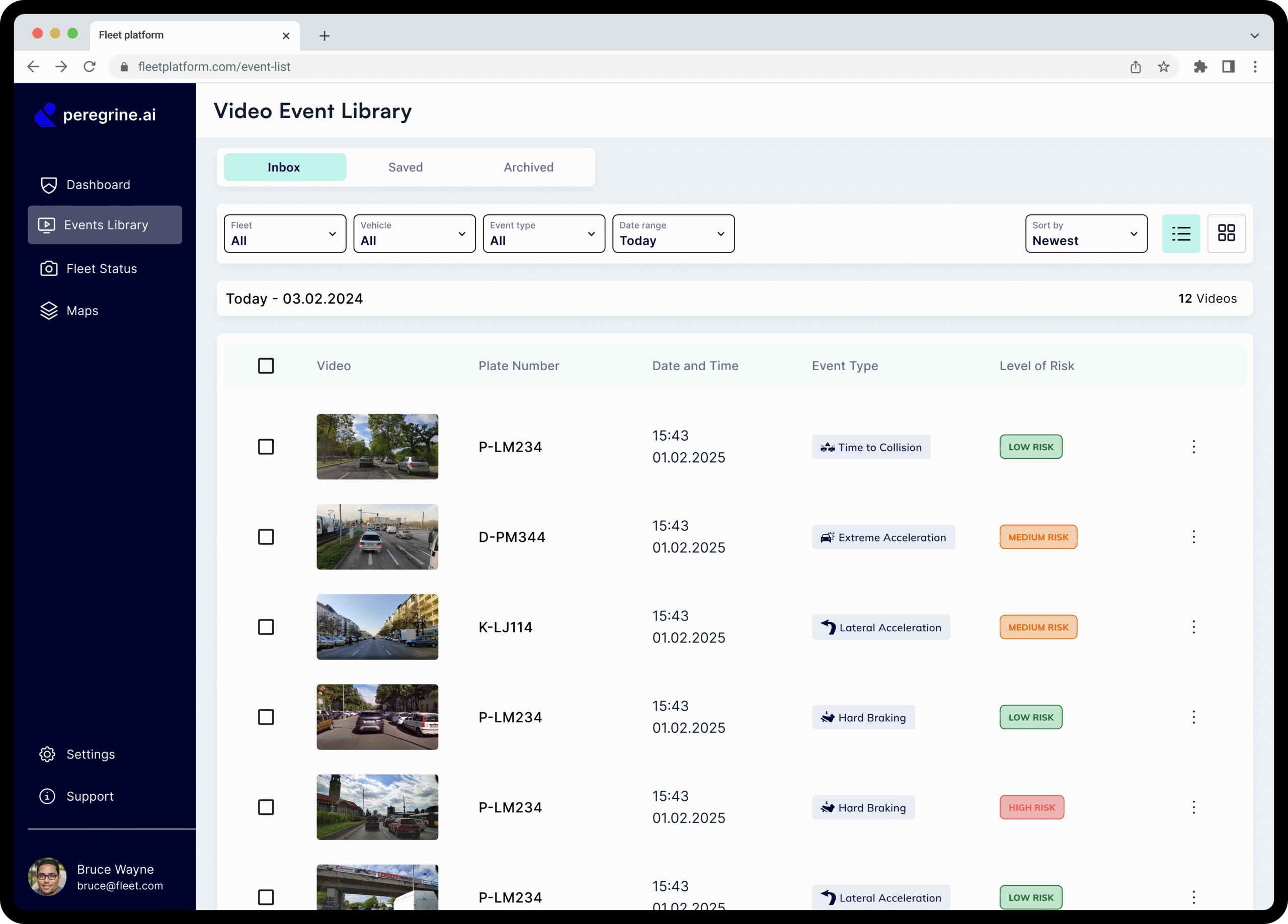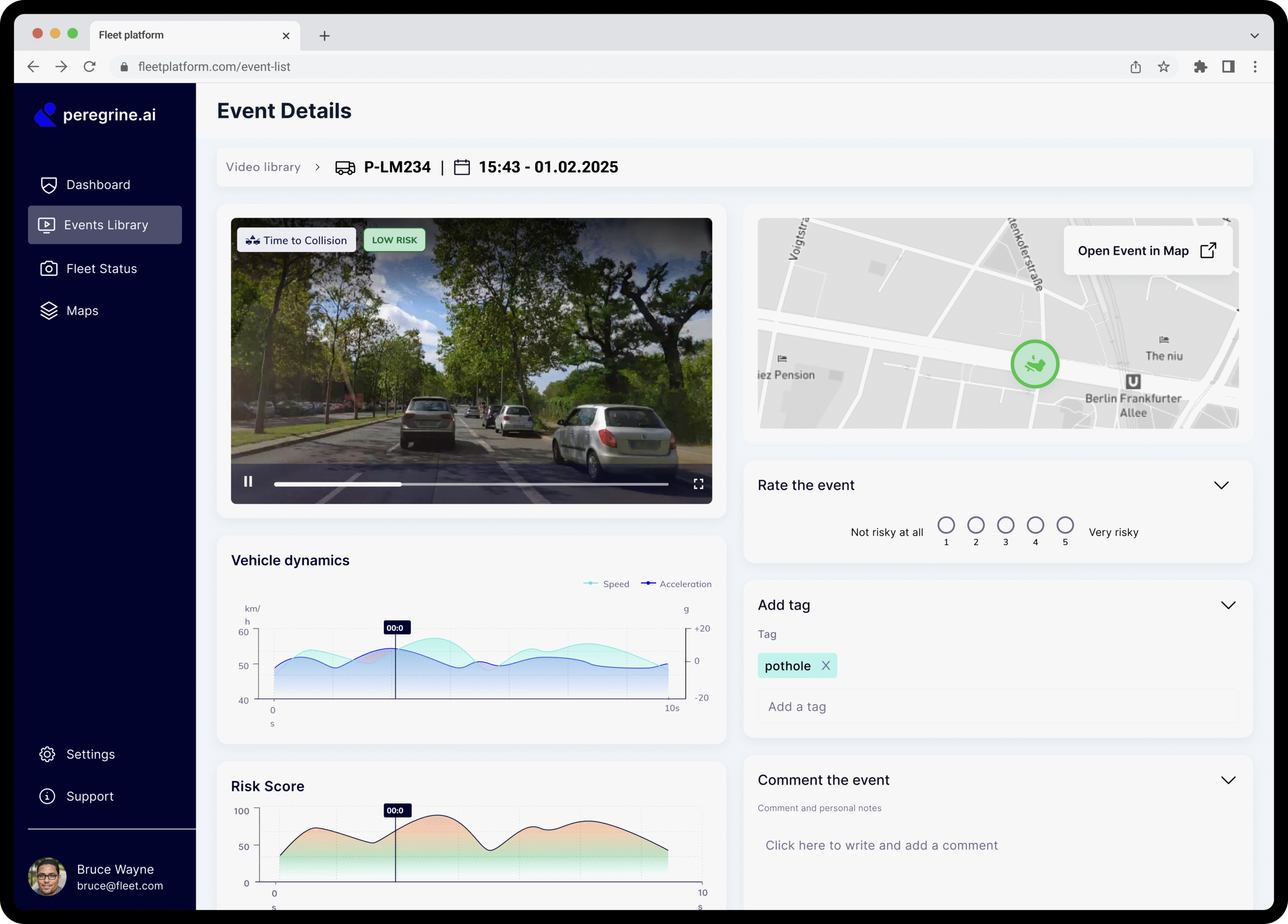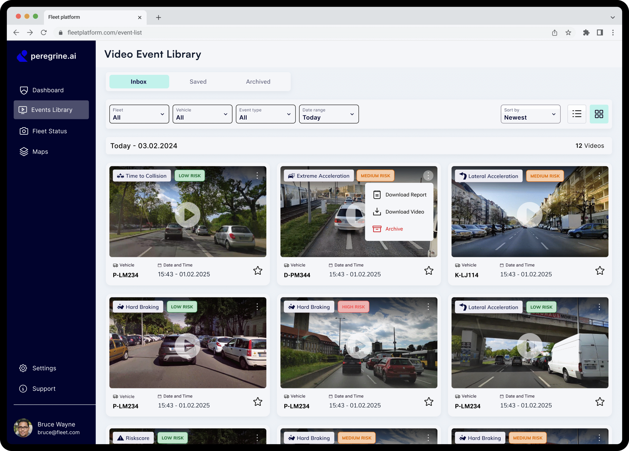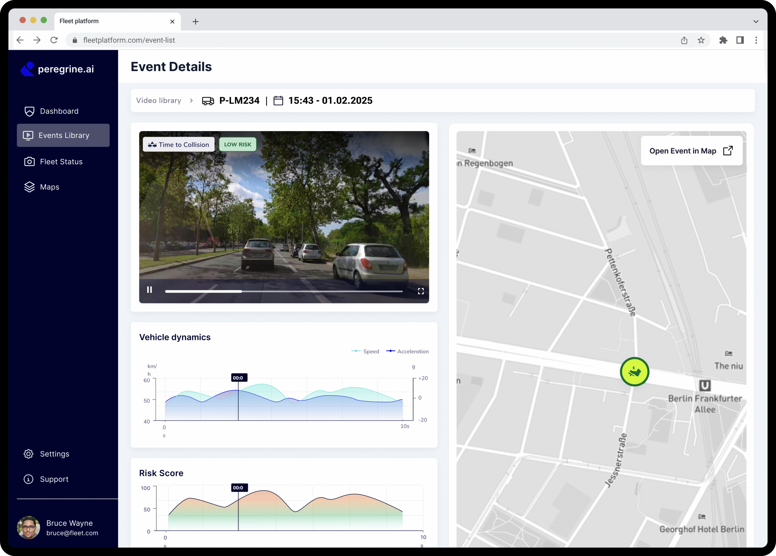 Peregrine, a deep-tech startup in the video telematics space, set out to transform how fleet managers understand driver behavior and manage road incidents. When I joined, they had: