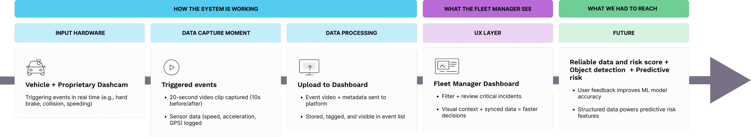 Before diving into designI needed to understand the landscape. Who were our users? What were their pain points? This included not only fleet managers but also our internal stakeholders – the data science and ML teams.