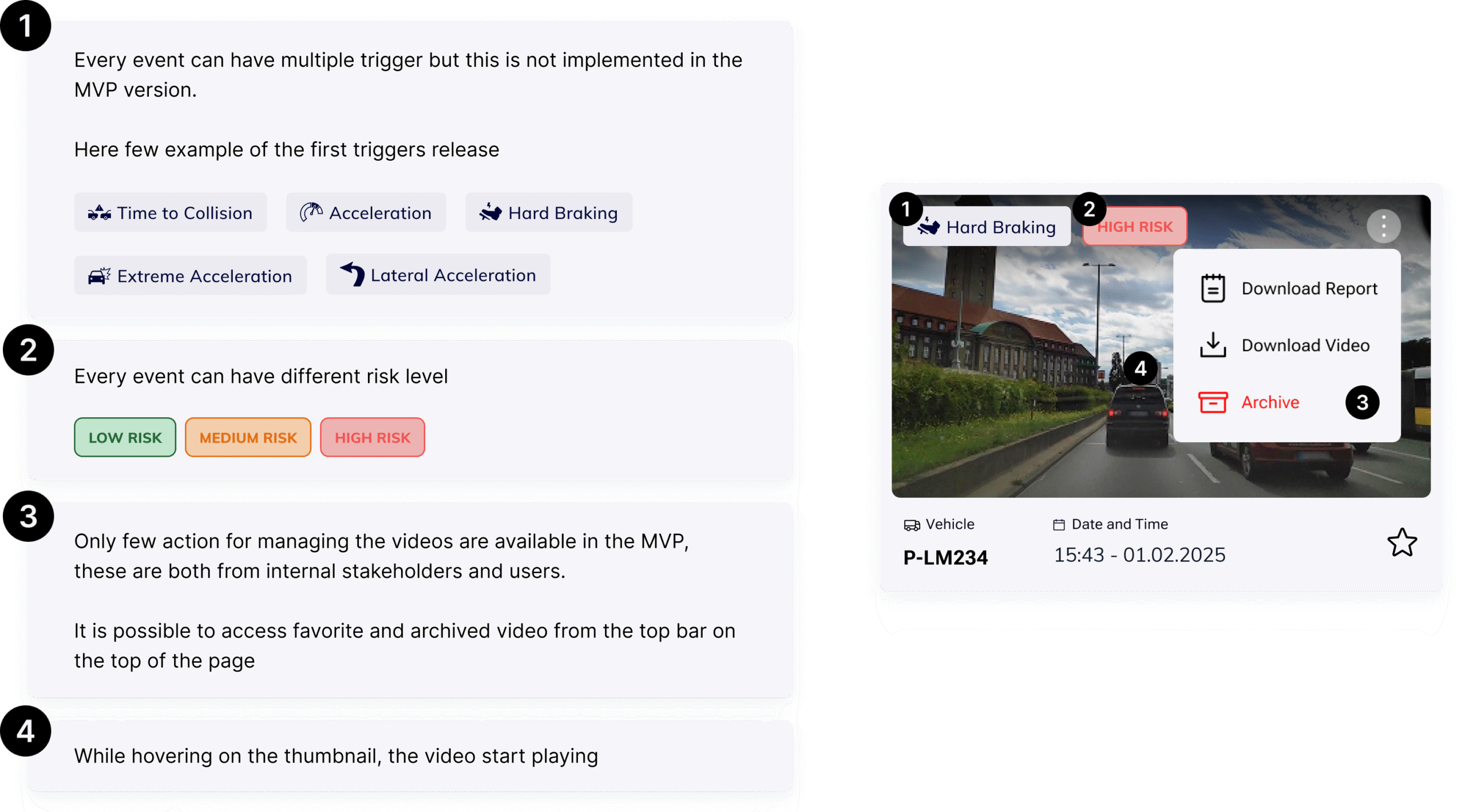 This page was designed to provide a clear and concise overview of all recorded events. Robust filtering and sorting capabilities allowed fleet managers to quickly identify high-risk incidents, prioritize their attention, and reduce data overload. Visual cues and clear labeling further enhanced usability, making it easy to navigate and understand the information presented. This page provided immediate value by streamlining incident review and management.