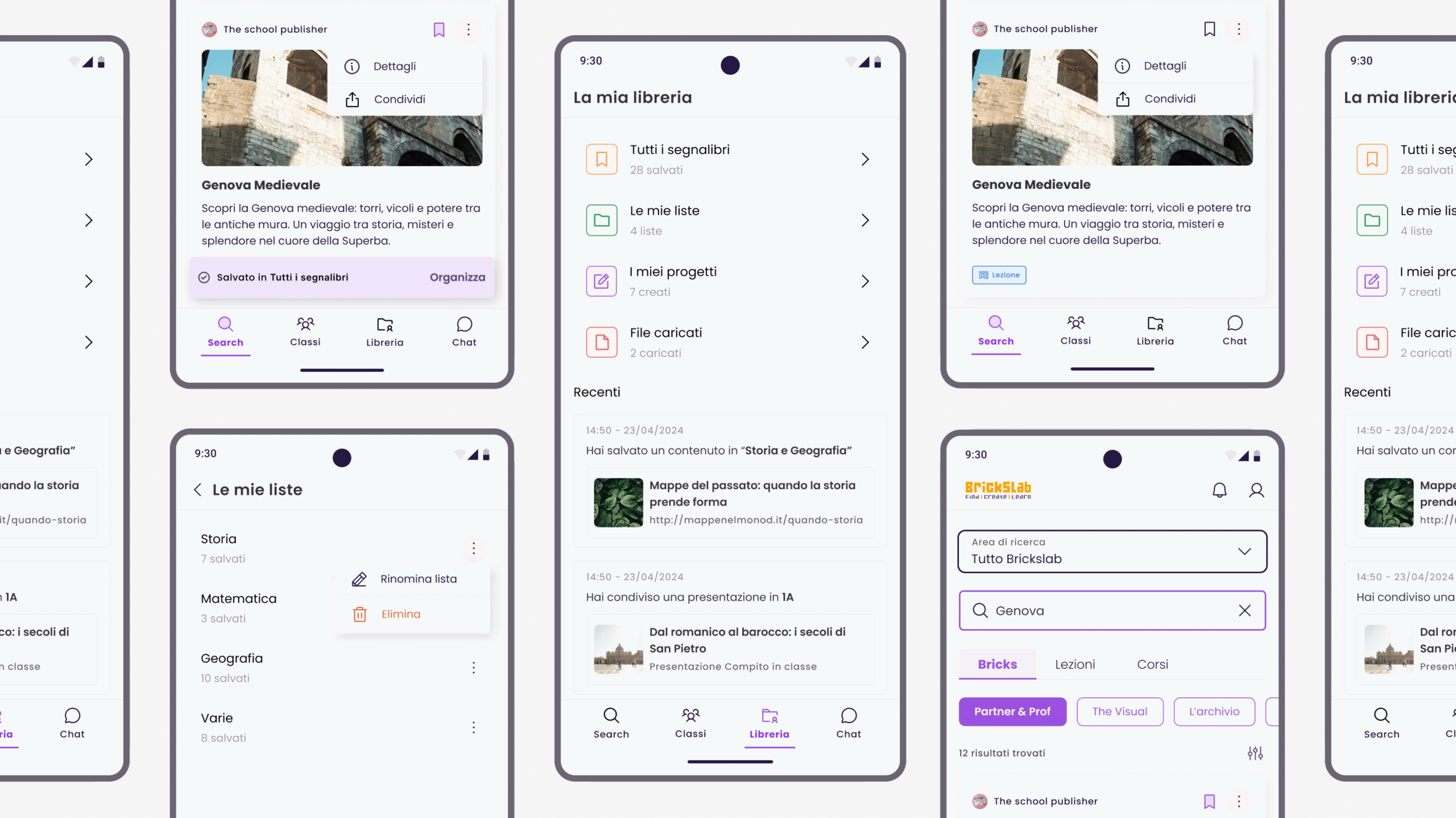 Final screens – Search EngineFinal screens – Test and various interactive contentsFinal screens – Library and BookmarksFinal Screens – Chat and Classrooms